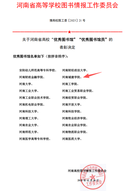 此次成功获评河南省高校优秀图书馆,是对我校图书馆工作的认可与肯定。图书馆将以此次荣誉为契机,牢牢把握高校图书馆高质量发展导向,持续彰显“全民阅读先进单位”的示范引领效能,始终聚焦学校学科建设核心任务与人才培养根本目标,稳步推进图书馆各项工作。